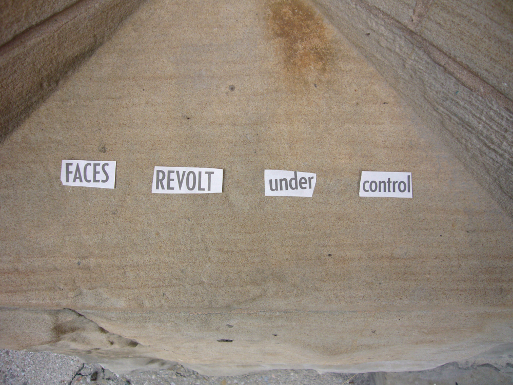 A series of text installations / art interventions in public space exploring a visceral and monumental experience of language and words. I would go for a walk in public space in a city, and find a space or area, which seemed interesting to write a word on the ground. This intervention was often during the day, in public, and while writing the word I would feel a sense of “social revolutionary act”. Sometimes, a person would come up to me and ask questions, and I would discuss art, language, public space, or media. The fact that these written words are temporary are an important link to Buddhism, and to how many things in public space are temporary or transitory, such as advertising, nature, businesses closing and opening, architecture, urban landscaping, and urban planning changing the city scape. When choosing a word to write, I randomly select a word ( and space), making this overall ” Sentence” random, in flux, evolving, like Surrealism’s automatic writing.